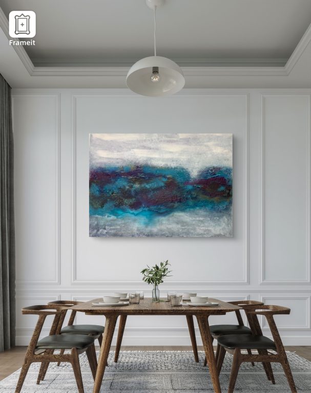 Dieses Bild lädt Dich ein, auf eine Reise der inneren Reinigung und des energetischen Ausbruchs zu starten. Die sanften, wellenartigen Schichten und die beruhigenden Farbtöne representieren die Freisetzung von unbewussten Lasten und fördert ein Gefühl der Leichtigkeit und Klarheit.