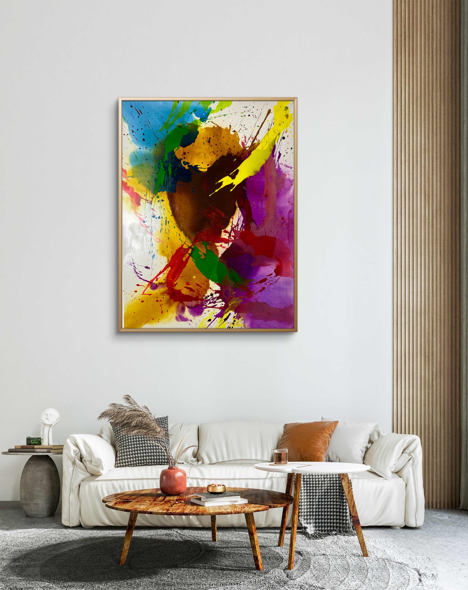 Dieses Kunstwerk entfaltet eine symphonische Magie, die die Seele berührt und den Geist erhebt. Die leuchtenden Farben tanzen wie kosmische Energien, die das Universum durchdringen. Jeder Farbspritzer erzählt von einer Reise in die Tiefen des Selbst, wo Licht und Schatten in Harmonie koexistieren. In diesem Farbenspiel offenbart sich die unendliche Schönheit der Schöpfung, ein Spiegelbild der inneren Welt, das dich einkädt, in die Unendlichkeit des Seins einzutauchen.